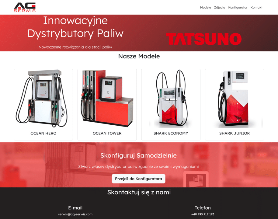 Nowoczesna i funkcjonalna strona internetowa dla AG Serwis, firmy zajmującej się kompleksową obsługą stacji paliw oraz sprzedażą dystrybutorów Tatsuno.